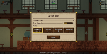 - Pouring and delivering drinks earns you EXP, which allows you to level up and improve your drink carrying capacity and other bartending skills.