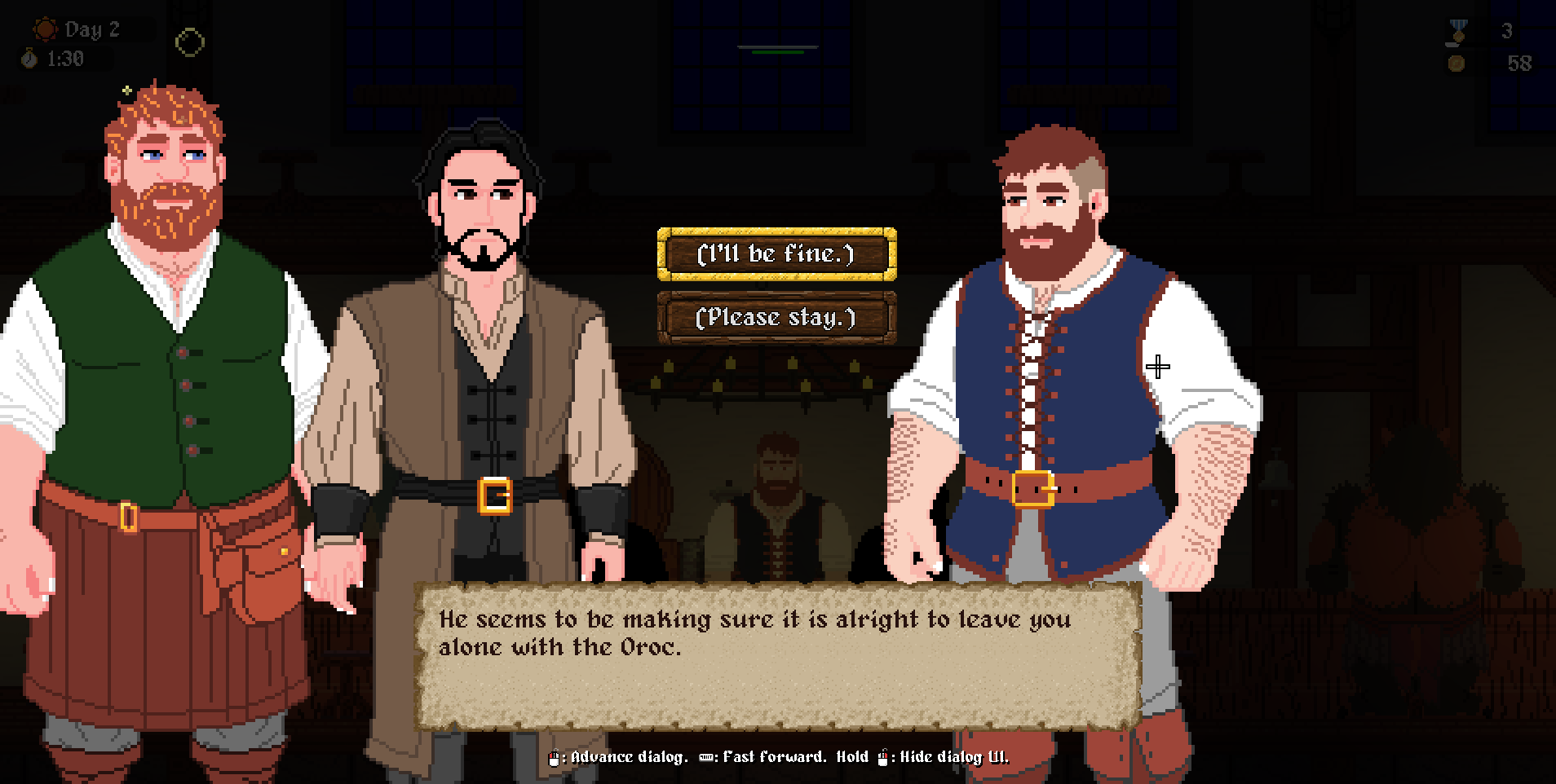 The Orocs need a place to drink and socialize at the end of their day, and they have chosen your tavern. You need the money to help your struggling business. And the newly formed resistance is very interested in anything you learn about the Orocs.